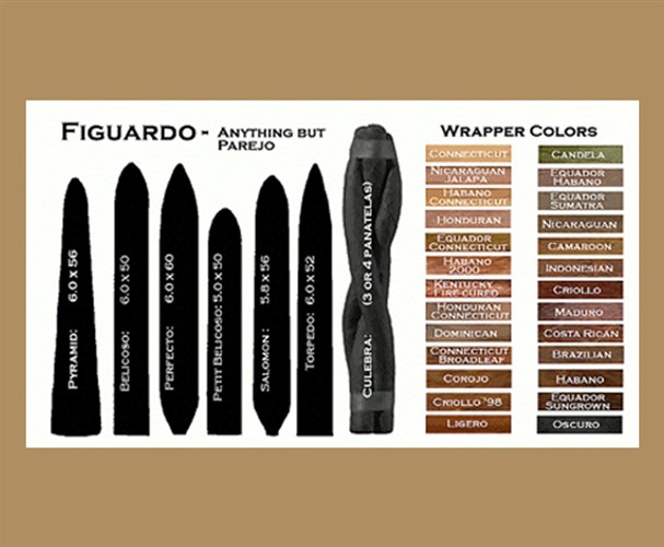 Figurados are anything other than that classic shape. They tend to have a bullet shape, and are tapered into a sharp point at the closed end. Some experts say this concentrates the smoke more and gives you a fuller flavor.